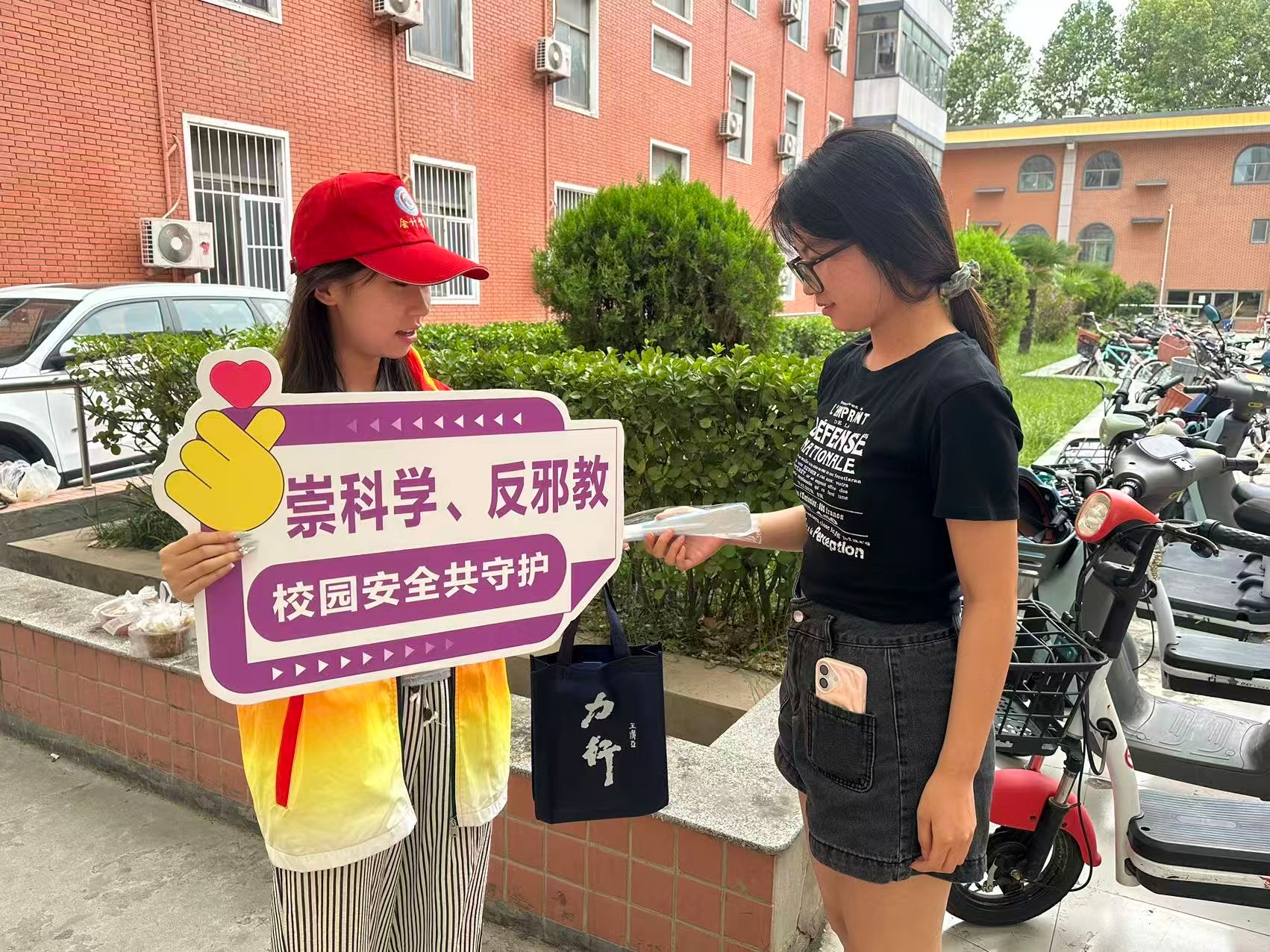 为增强师生识别、防范和抵制邪教的能力,助力平安校园建设,9月2日至3日校园迎新之际,会计学院组织党员志愿者开展“树牢国家安全观 崇尚科学树新风”反邪教宣传活动。