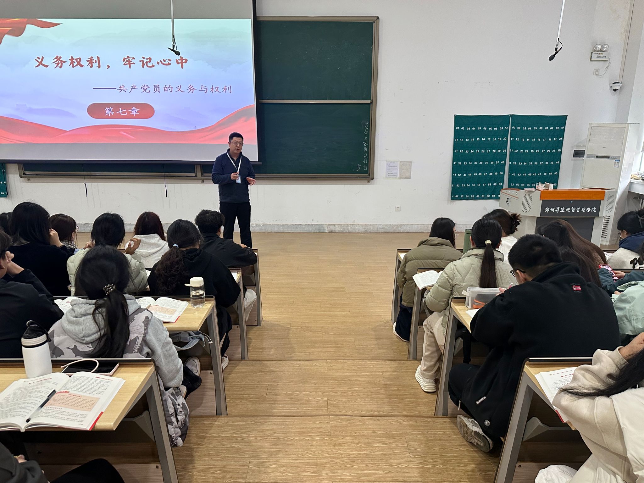 课上,许震老师系统阐释了共产党员义务与权利的辩证关系。他强调是否认真履行党员义务,是衡量党员的重要标尺。党员权利是保障党员发挥先锋模范作用的重要基础,也是推进党内民主建设的重要体现。同学们在日常学习生活中,要以党员标准严格要求自己,既要主动践行奉献精神,在专业学习、志愿服务、集体活动中锤炼品格;也要增强权利意识,主动了解党的政策,积极参与党内事务讨论,在实践中提升自身的政治素养和综合能力。