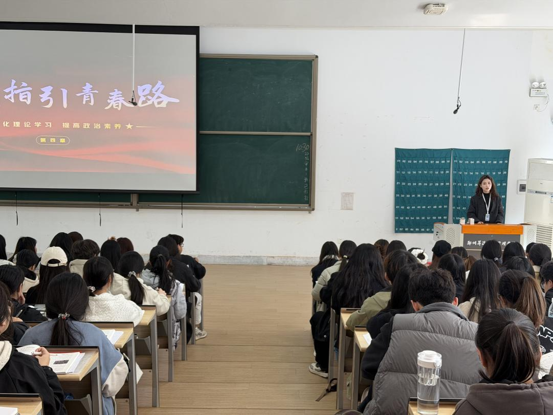 2025年11月3日,会计学院会计学专业学生第三党支部书记张高在教学4号楼118教室,为学院第二十二期入党积极分子、发展对象讲授题为“中国共产党的基本理论、基本路线和基本方略”的主题党课。