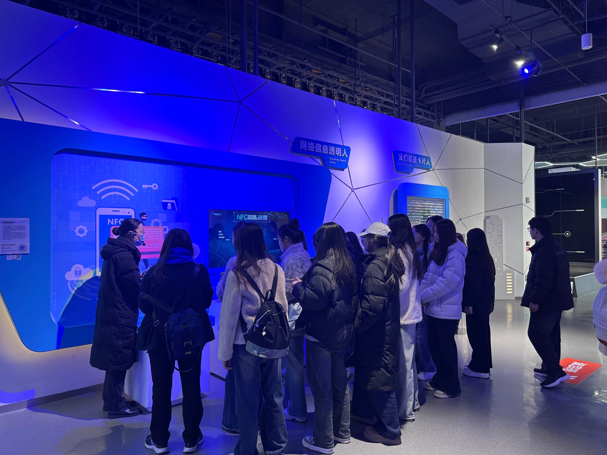 郑州网络安全科技馆是国内首个以网络安全为主题的科技馆,承载着重要的科普与教育使命。在馆内讲解员的引领下,参学人员依次参观了个人安全、政企安全、社会安全及综合竞技四大主题展区,近距离接触了反偷拍挑战屋、仿冒电话、AI换脸、个人隐私安全、网络信息透明人、网络安全大事记、探秘元宇宙、国际特工游戏等特色展项,对网络安全领域的风险挑战与防护技术形成全面认知。