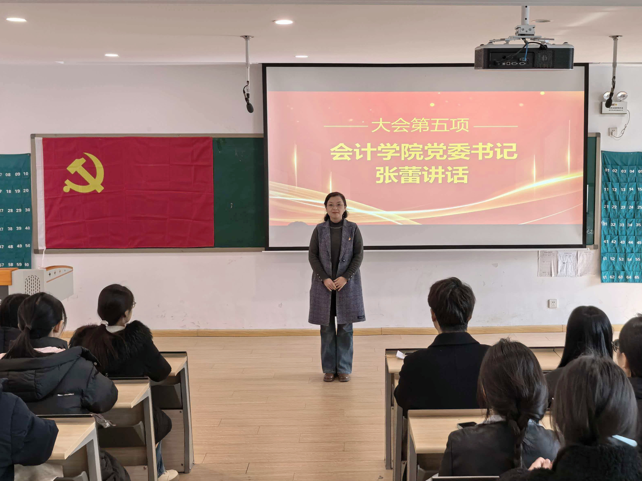 为教育引导新发展党员牢记初心使命、强化党员意识、坚定理想信念,会计学院党委于2025年12月24日在教学4号楼108教室举行会计学院2025年新党员入党宣誓仪式。学院党委书记张蕾、财务管理专业学生第一党支部书记黄露出席会议。宣誓仪式由学院党委组织员曹会美同志主持。