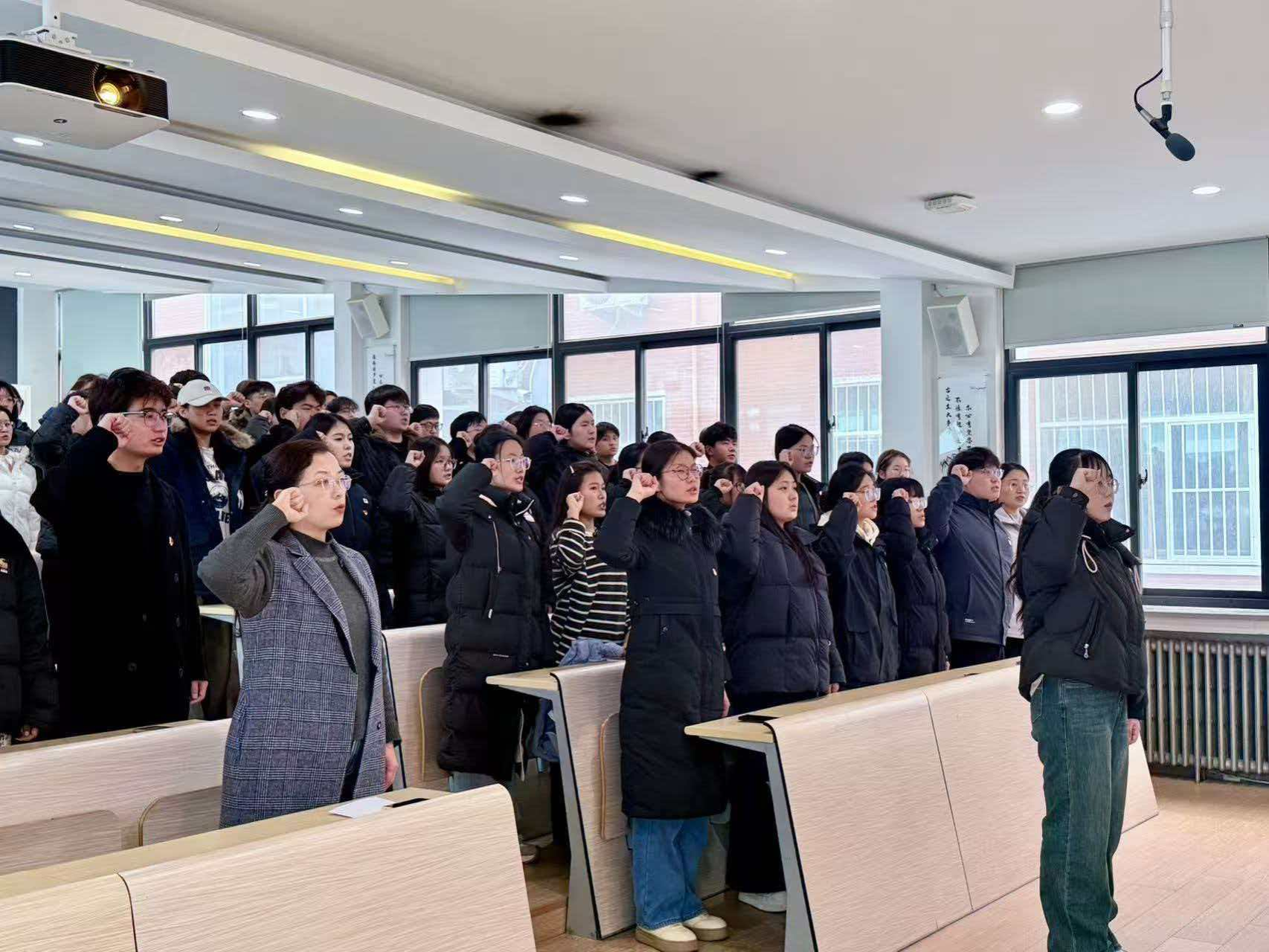 宣誓仪式在庄严的国际歌声中拉开帷幕。主持人宣读了我院2025年新发展党员名单,并对新加入党组织的预备党员表示祝贺。在学生党员代表魏晓柠的带领下,全体党员面向党旗,庄严宣誓,老党员重温入党誓词。预备党员代表李英旭发言,他表示将持续用党的创新理论武装头脑、指导实践;以党员标准严格要求自己,在实践中锤炼党性修养;将持续加强专业学习,以实际行动践行初心使命。