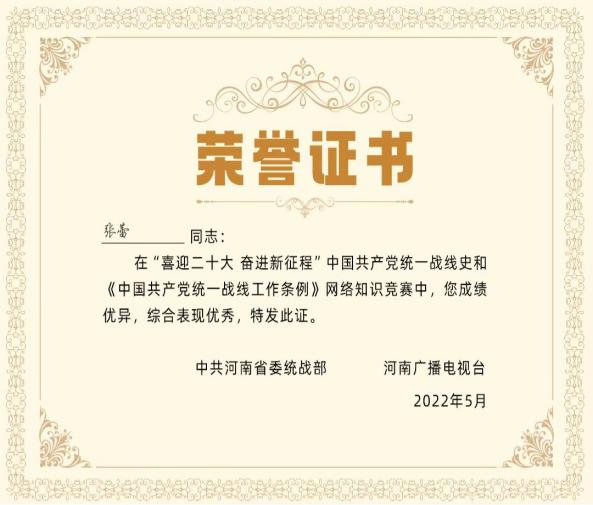 为全面贯彻落实党中央关于统一战线工作的重大决策部署,推动习近平总书记关于加强和改进统一战线工作的重要思想和系列讲话精神入脑入心,引导和调动师生在浓厚学习氛围中迎接党的二十大胜利召开,根据学校党委工作部署,结合学院实际,2022年5月12日至5月31日,会计学院组织全体师生参加了由中共河南省委统战部和河南广播电视台主办的“喜迎二十大 奋进新征程”中国共产党统一战线史和《中国共产党统一战线工作条例》网络知识竞赛。