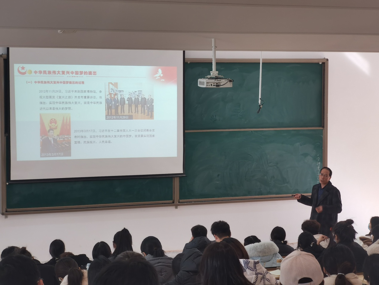 何保国老师以《善作善成 一往无前——实现中华民族伟大复兴》为主题,他从中华民族伟大复兴中国梦提出的过程讲起,深入讲解了中国梦的科学内涵,阐述了党的十九大提出分两步走全面建成社会主义现代化强国的奋斗目标。强调当代大学生要把所知所学融入到行动之中,做到知行合一,学以致用,努力为实现中华民族伟大复兴贡献自己的青春力量。