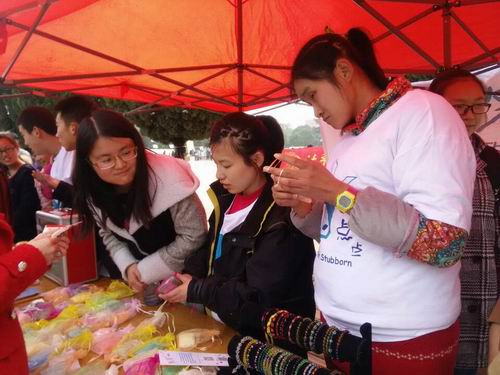 下午2:00活动正式开始,活动开始前我系青志协与创行协会、奇色花智障人士服务中心的伙伴们已经做好了事前的准备工作,将智障人士服务中心的小伙伴们(智障儿童)手工制作的香皂整齐的摆放出来,希望通过义卖来帮助更多的智障人士快乐的生活。而参加活动的四名奇色花智障人士服务中心的小伙伴们(智障儿童)也表现的特别兴奋,她们热情的与路过的在校学生交流。工作人员向大家介绍自闭症带来的危害和这次活动的意义。呼吁更多的人去关注自闭症群体。