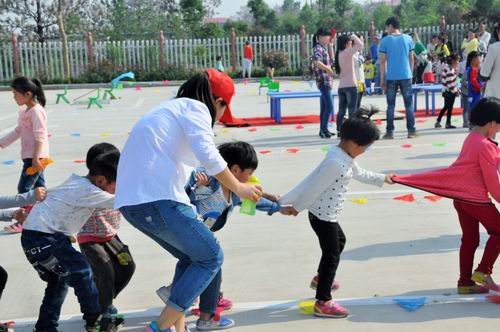 下午三点,志愿者们协助老师带领小朋友进入场地,在幼儿园园长及志愿者代表的真挚致辞后,趣味比赛在小朋友们欢快活泼的健康操中正式开始了。志愿者们精心策划的“过山洞”、“百发百中海洋球”、“两人三足”、“小脚踩大脚”等活动把运动会推向高潮,孩子们可爱的表情、稚嫩的动作引得赛场笑声不断,在趣味亲子活动中小朋友与家长亲密互动、团结互助,上演了一幕又一幕的温馨画面。