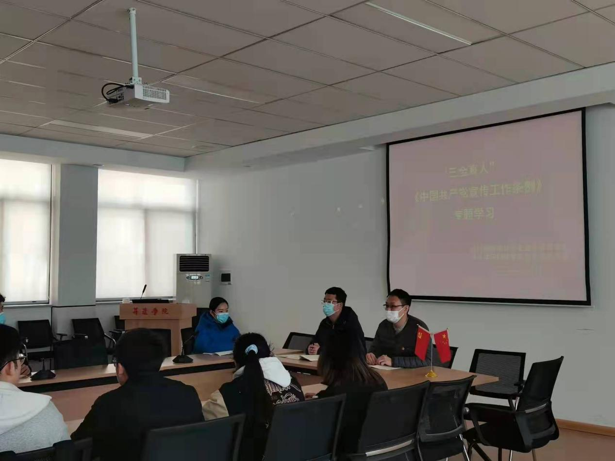 会议开始,党支部书记张巍炜、许震同志强调关于党的知识学习的重要性,嘱咐大家要积极学习。接下来,党支部党员带领大家对“三全育人”《中国共产党宣传工作条例》相关文件进行系统学习,学习了三全育人的出台背景、总体目标、目的要求和现实意义,又对条例出台的背景和意义、关于宣传工作定位作用、指导思想和根本任务有哪些规定、对各级党组织承担的宣传工作职责规定、对加强基层宣传工作以及如何抓好条例的贯彻落实进行学习。