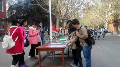 2015年4月8日,会计系青年志愿者协会积极响应郑州金翅公益2015乡村支教活动,在我院开展乡村支教的宣传、队员招募。