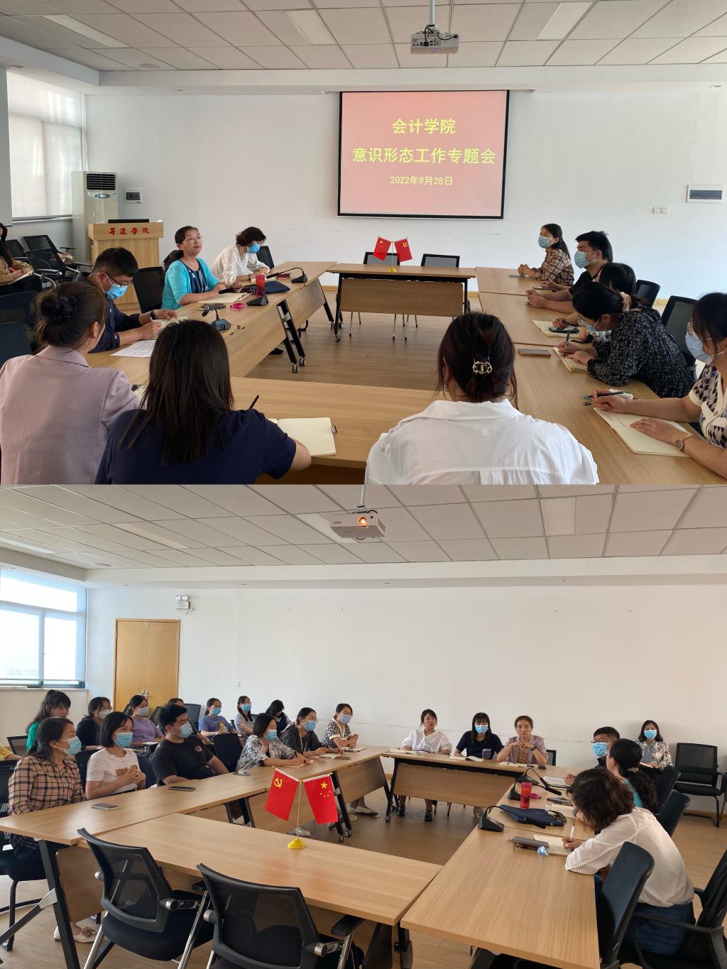 9月28日下午,会计学院党委在4号楼209会议室组织召开意识形态工作专题会,学院领导班子、学生党支部书记及全体辅导员老师参加会议,会议由会计学院党委书记张蕾主持。