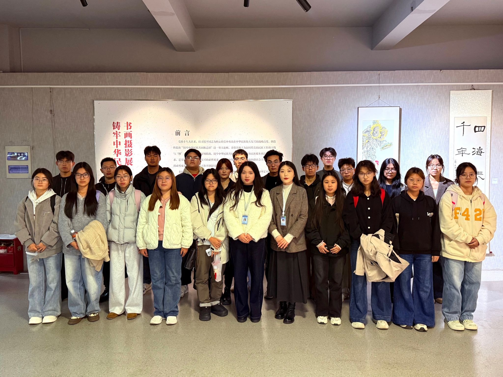 2025年11月10日下午,会计学院组织师生代表共同前往艺术大楼三楼展厅,参观“铸牢中华民族共同体意识”书画摄影展。