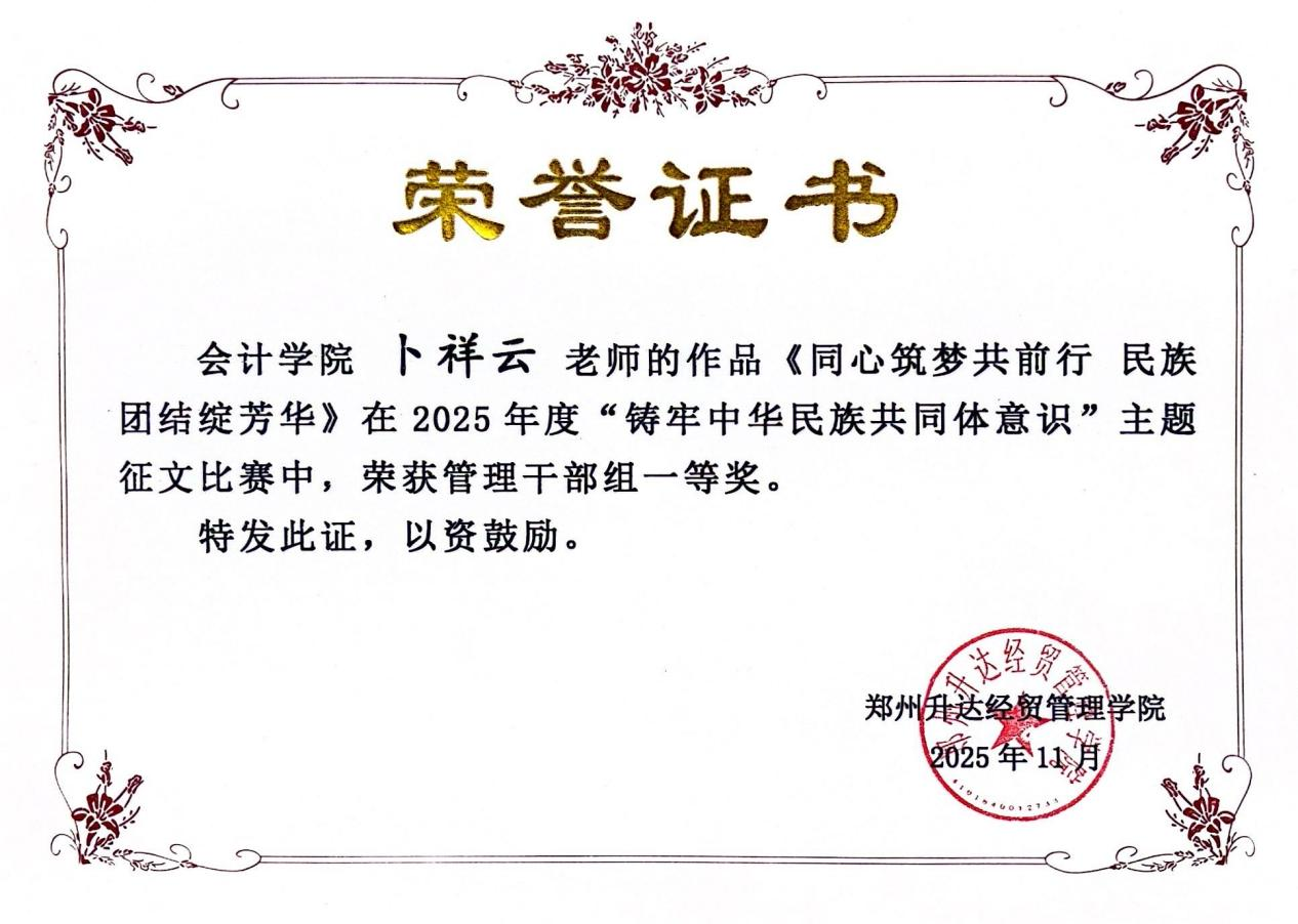 会计学院在我校 2025 年度 “铸牢中华民族共同体意识”主题征文比赛中斩获大满贯