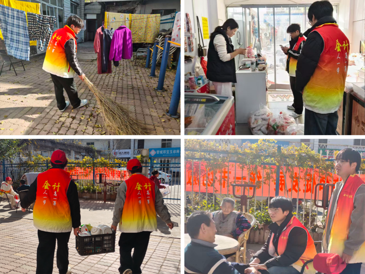 当天早上,志愿者们提前完成了速冻饺子等慰问品的采买工作,在指导老师陈刚老师和社长李鹏超的带领下,大家分工明确,到达之后及时与敬老院工作人员对接,将饺子等慰问品送到工作人员手中。随后,在陈老师的亲自带领下,大家与老人们亲切攀谈,围绕天气、预防感冒等轻松话题展开交流,既传递了关怀又避免过度打扰老人休息。紧接着,志愿者们又开始对院子进行全面细致的打扫工作,他们手持扫帚、簸箕等工具,仔细清理院子里的落叶、杂物和灰尘,使院子干净整洁,焕然一新,还帮助工作人员清洗了餐具,为本次志愿服务活动画上了圆满的句号。