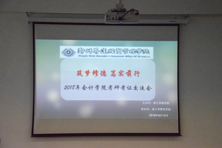为传承会计学院优良学风,帮助学生树立明确的目标。6月12日下午5:00,由会计学院团委主办、会计学院学艺部承办的“考研考证交流会”在教学四号楼118教室如期举办。