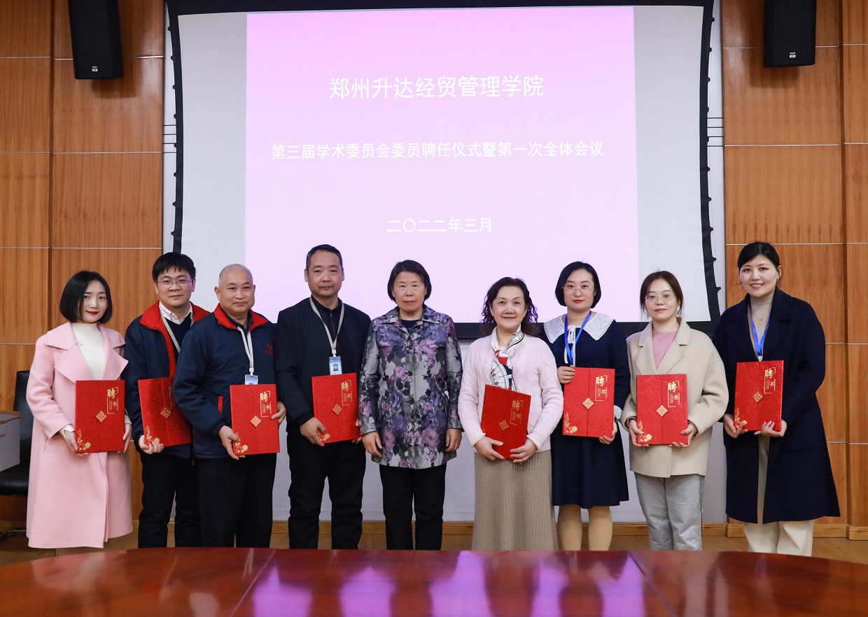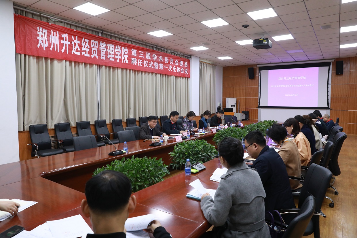 3月9日下午,郑州升达经贸管理学院第三届学术委员会委员聘任仪式暨第一次会议在行政楼第二会议室召开。学术委员会主任郭爱先、副主任张金安、张欣、吴益民出席会议,第三届学术委员会委员及秘书处工作人员参加了会议。学术委员会副主任张金安主持会议。
