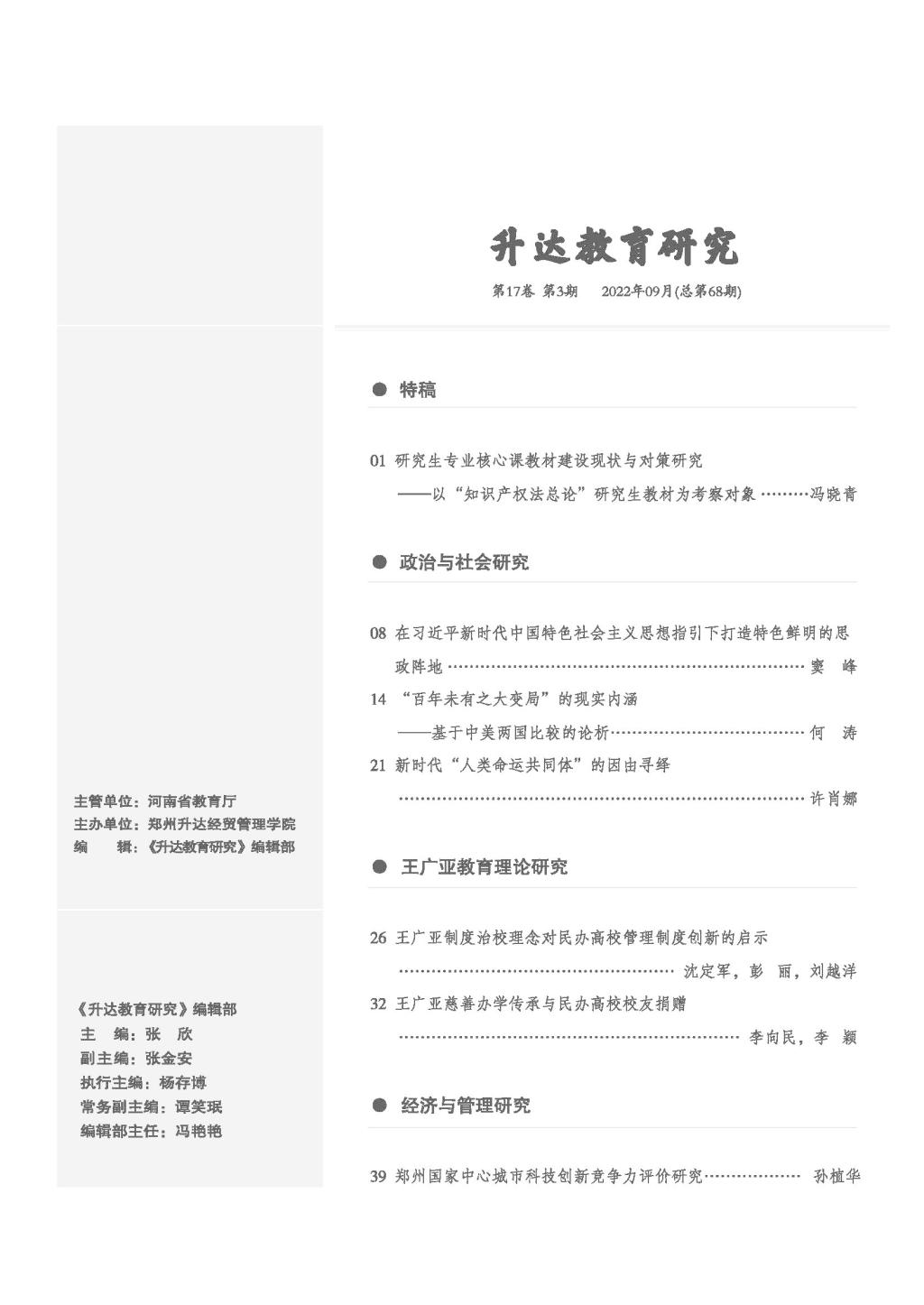 《升达教育研究》2022年第3期目录