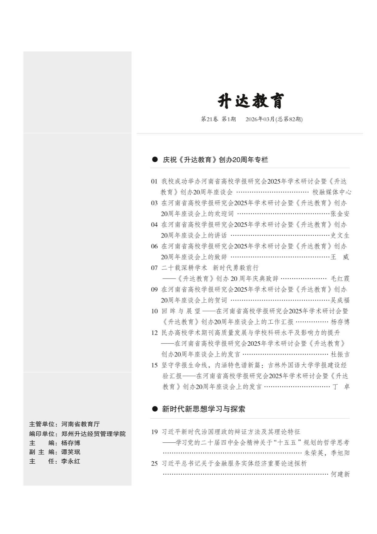 《升达教育》2026年第1期目录