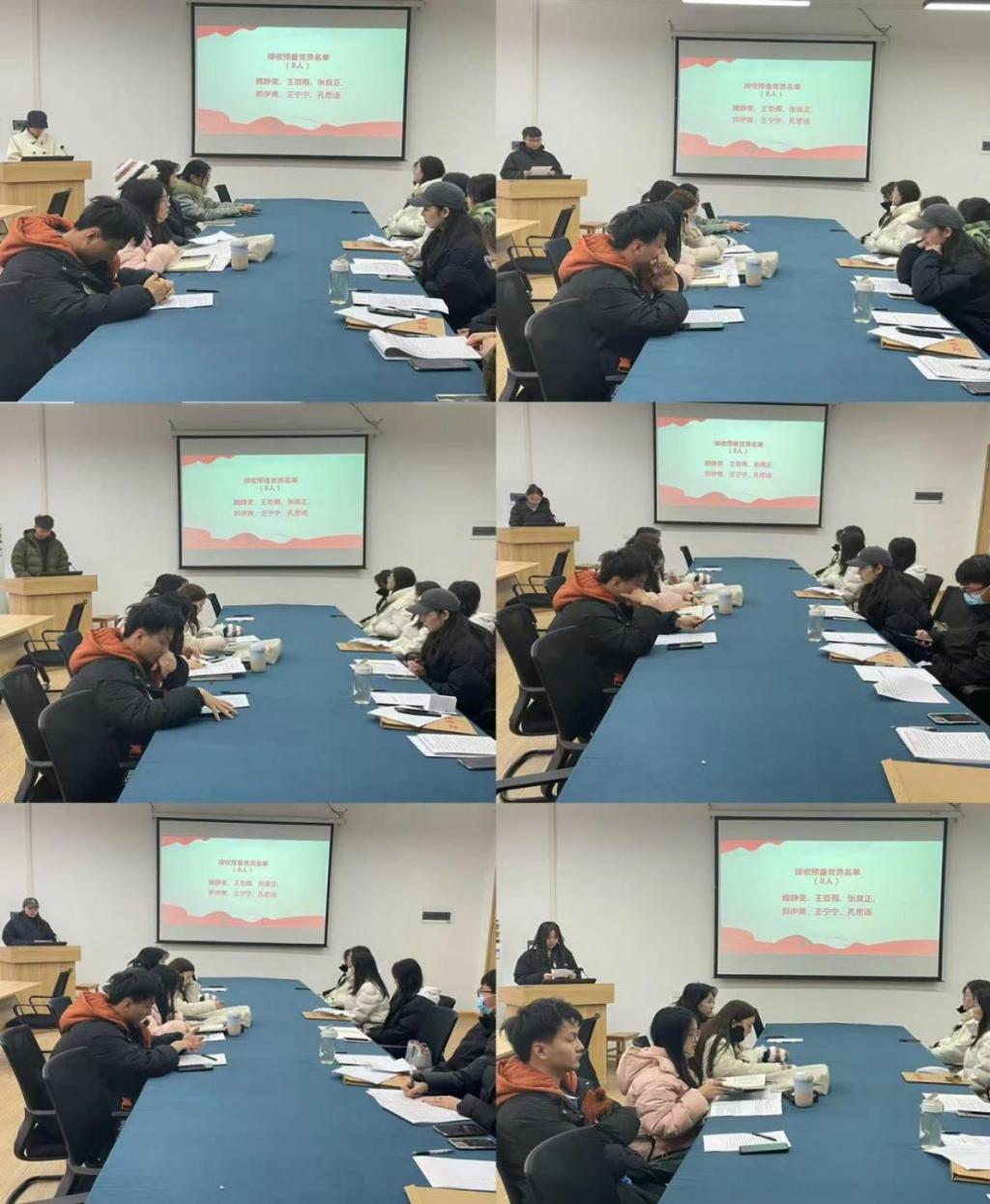 全体到会正式党员进行无记名投票后,党支部书记张瑞霞宣布,经管理学院工商管理专业学生第二党支部大会讨论以及投票情况的决定,支部同意魏静雯、王哲雨、张良正、郭伊青、王宁宁、孔思语,以上6名发展对象转为预备党员。