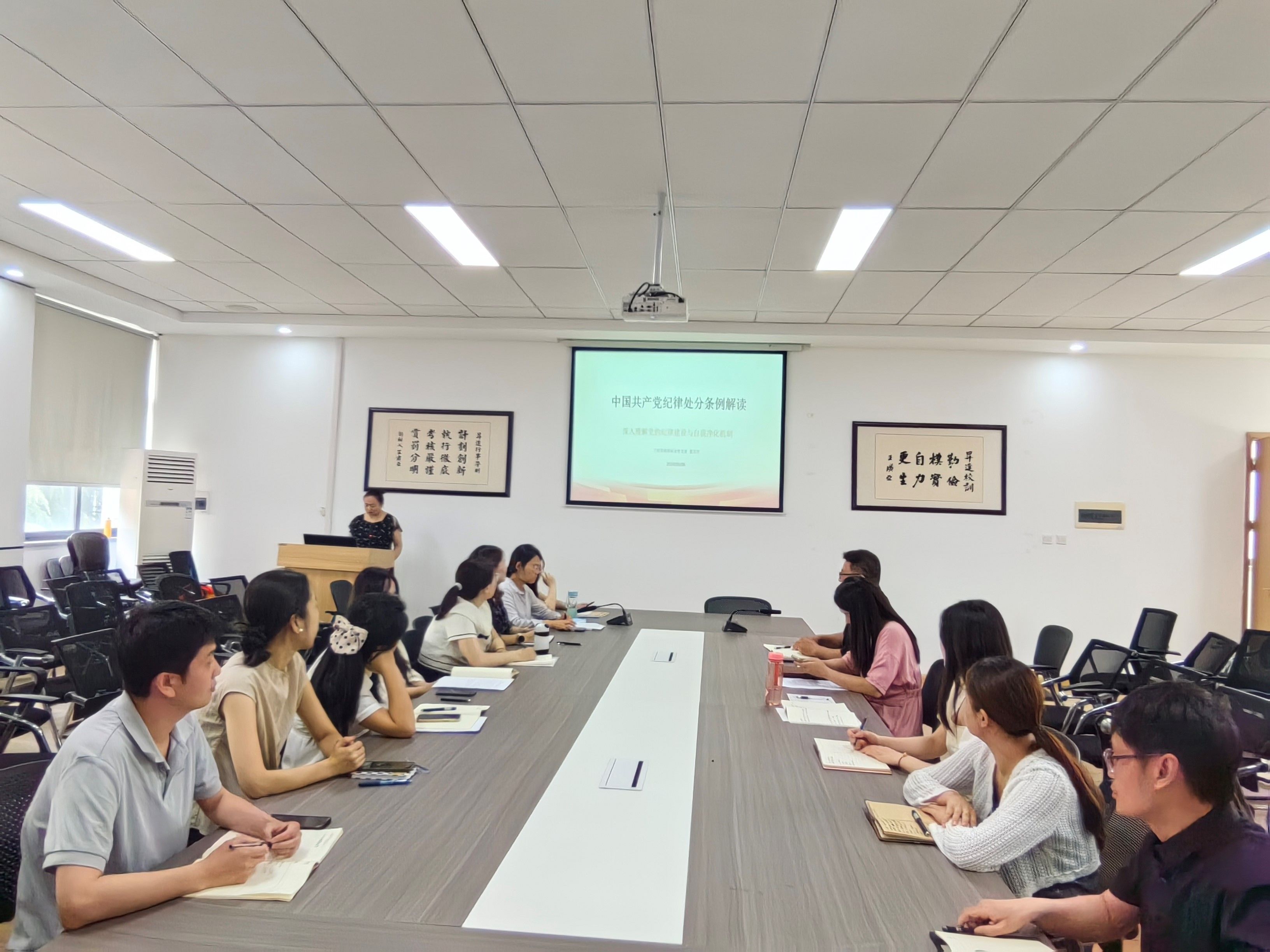 为深入学习贯彻《中国共产党纪律处分条例》,推动党纪学习教育入脑入心、走深走实。6月6日下午,工商管理教研室党支部书记董芳芳同志在2号楼209通过解读《中国共产党纪律处分条例》,以深入理解党的纪律建设与自我净化机制为主题,为支部成员讲授党纪学习教育专题党课。