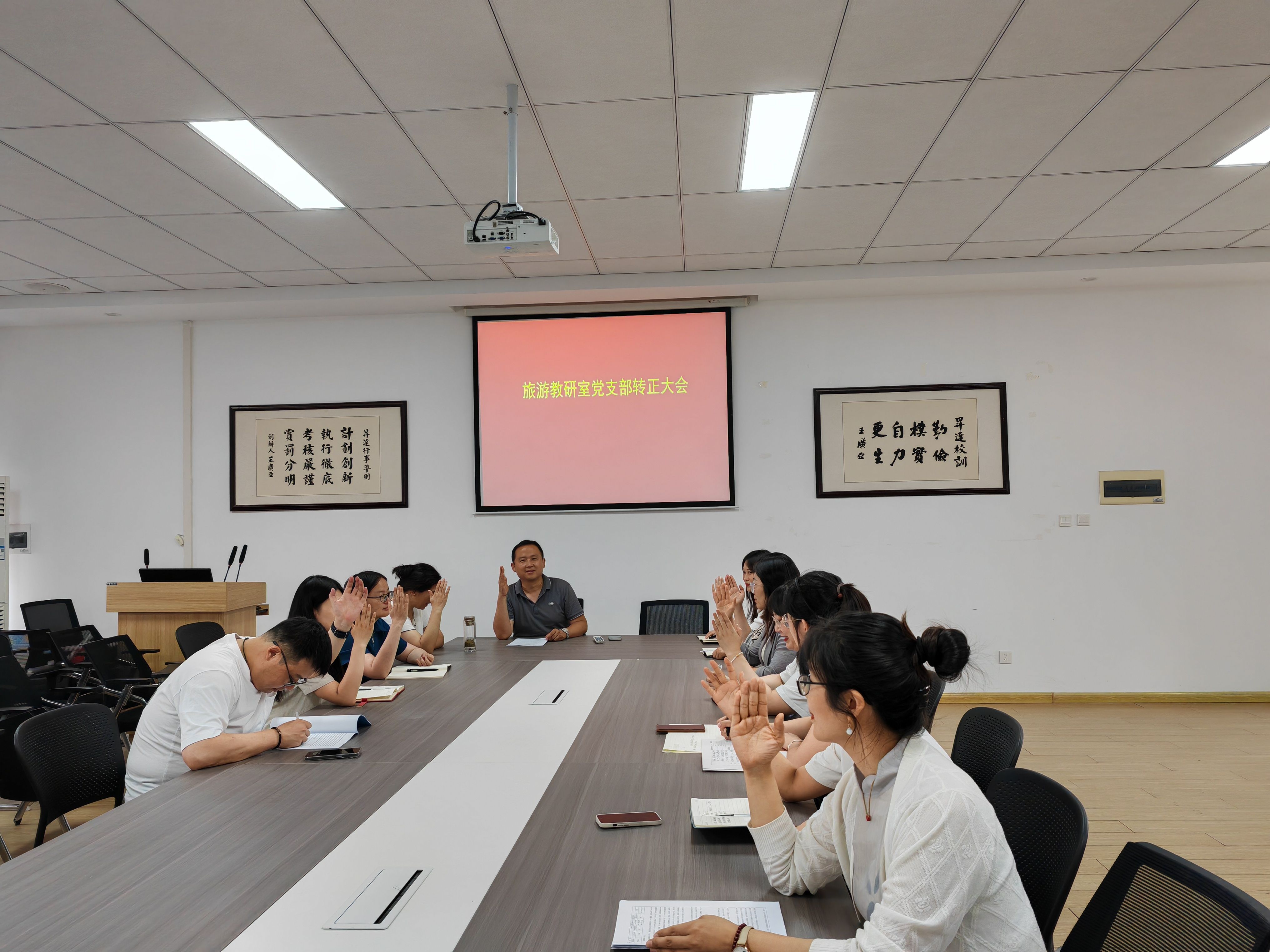 2024年5月24日,管理学院旅游管理教研室党支部在教学2号楼209会议室召开预备党员转正会议。会议由支部书记李裔辉主持,旅游管理教研室全体正式党员参加会议。