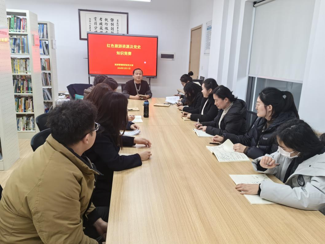 为深化党史教育,旅游管理教研室党支部于2024年12月10日举办了一场红色旅游资源及党史知识竞赛。此次活动旨在通过竞赛形式,增强教师和公众对红色旅游资源的认识,同时加深对党史知识的了解,传承红色基因,弘扬革命精神。