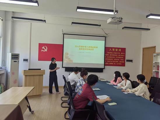 6月20日下午,为深入贯彻中央八项规定精神,进一步强化学生党员作风建设,管理学院旅游管理专业学生第三党支部在2号楼305教室组织开展专题党课,支部书记王洁主讲,全体学生党员参加。