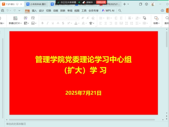 7月21日晚上,管理学院党委理论学习中心组(扩大)学习会议在腾讯会议召开。管理学院党委书记职正路,党委副书记、院长朱影影和全体党委委员、党支部书记参加会议。会议由职正路主持。