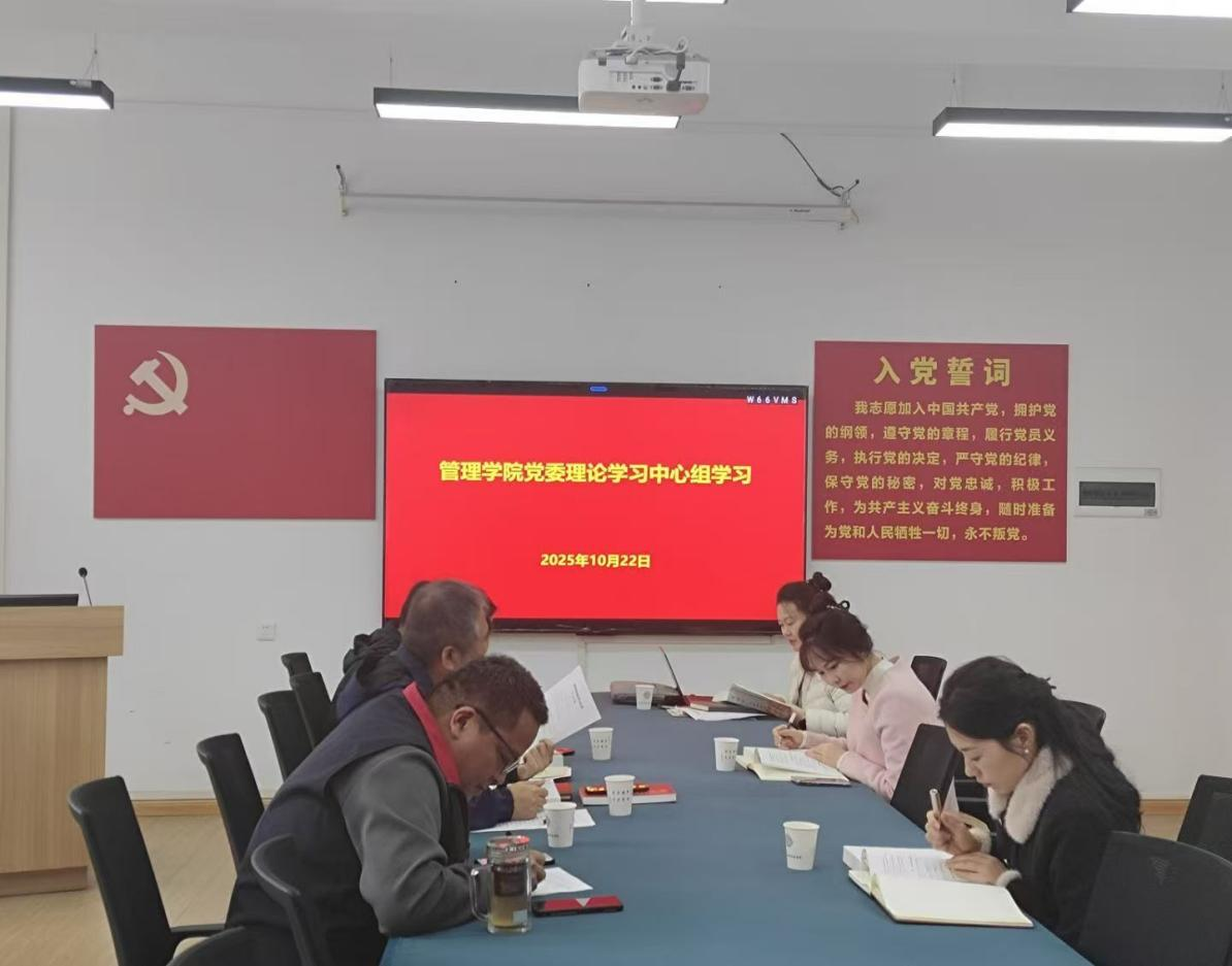 10月22日上午,管理学院党委理论学习中心组学习会议在教学2号楼305会议室召开。管理学院党委书记职正路,党委副书记、院长朱影影,党委副书记兼团委书记许广庆和全体党委委员参加会议。会议由职正路主持。