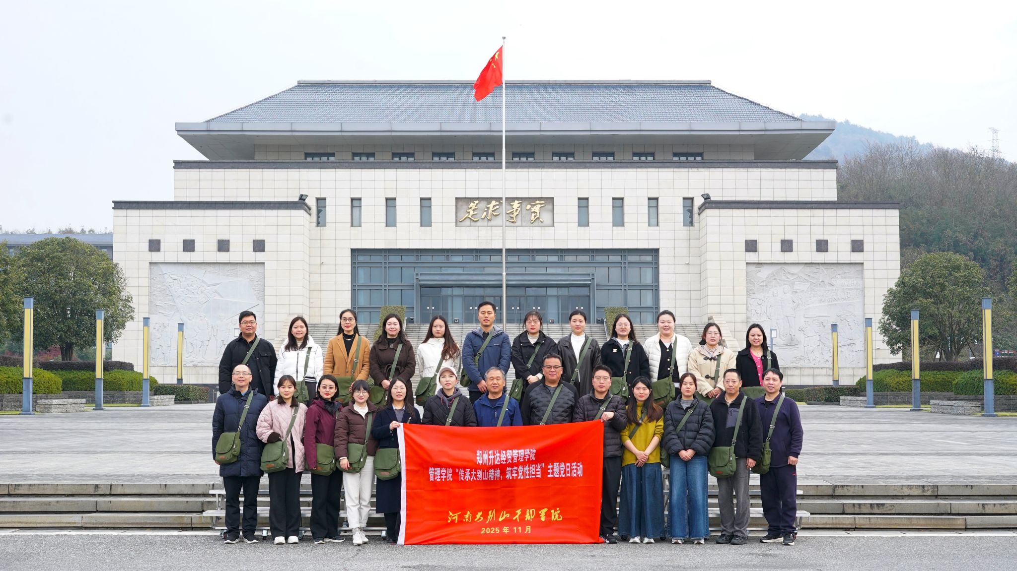 为深入学习贯彻党的二十届四中全会精神,传承红色基因、淬炼党性修养,汲取奋进力量,管理学院于11月22日至23日组织教职工党员赴大别山干部学院开展“传承大别山精神,筑牢党性担当”主题党日活动。本次活动采取现场教学与情景教学相结合的方式开展。
