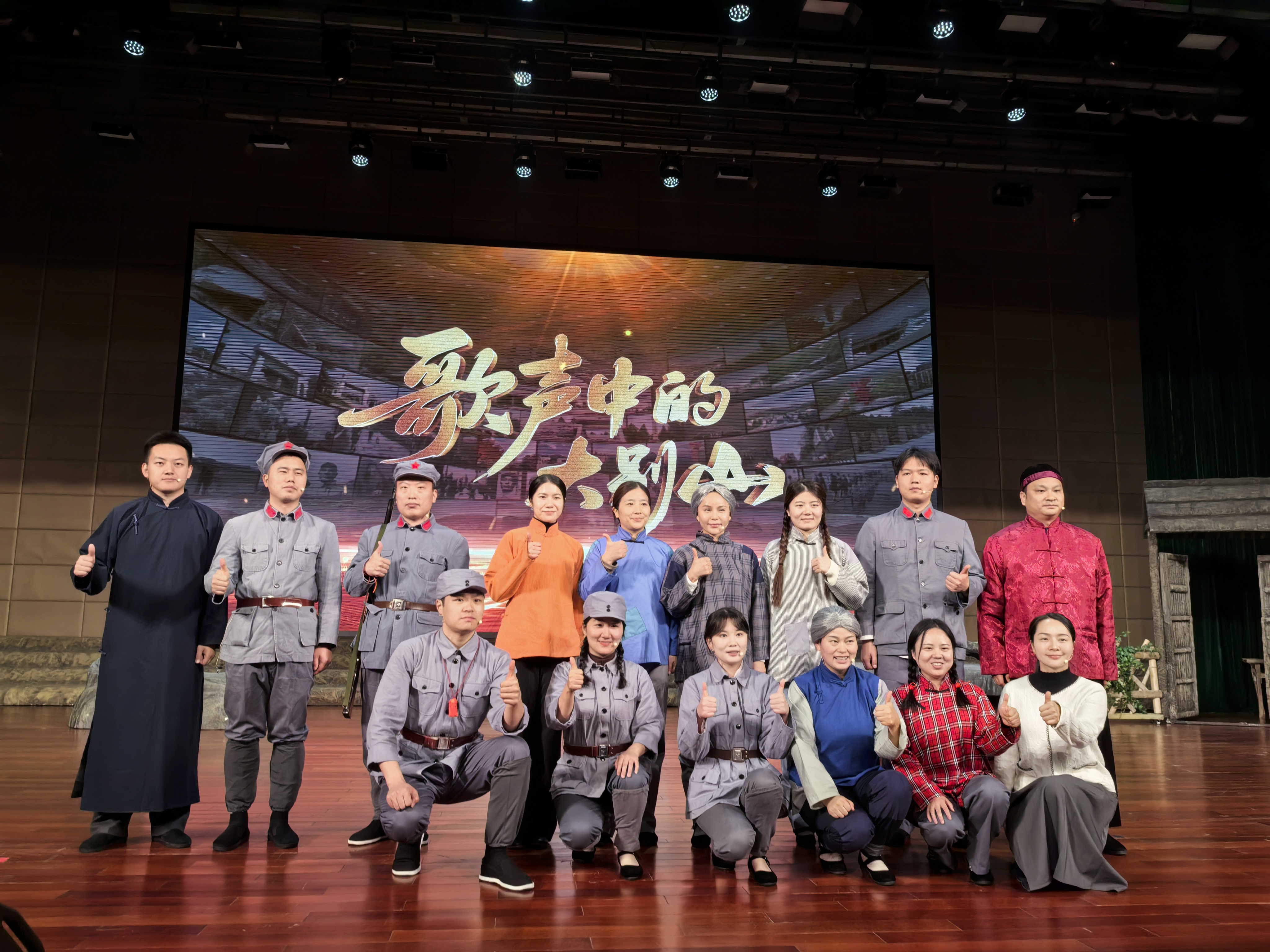 在情景教学环节,党员们集体观看沉浸式音乐党课《歌声中的大别山》。该党课通过“歌谣叙事+历史重现+精神解码”的创新表达,以《黄安谣》《八月桂花遍地开》《送郎当红军》等大别山区经典红歌为线索,在古今场景切换中触摸红色历史记忆,让红色历史变得生动鲜活而充满温度。我院四位教师党员还参与了党课的表演环节,更添现场感染力。这场音乐党课以历史与现实交织的独特方式,有效增强了党性教育的实效性,进一步提升了大别山精神的感染力与传播力。