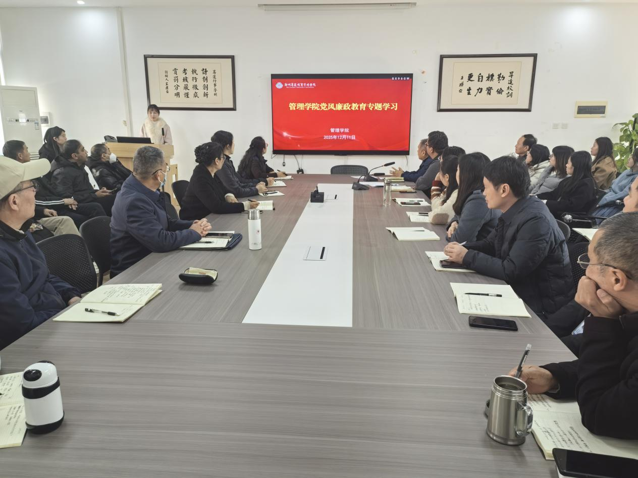 为巩固拓展学习教育成果、深入推进党风廉政建设,营造风清气正的育人环境,2025年12月11日,管理学院在教学2号楼209会议室组织开展党风廉政教育专题学习。全体教职工参加学习。