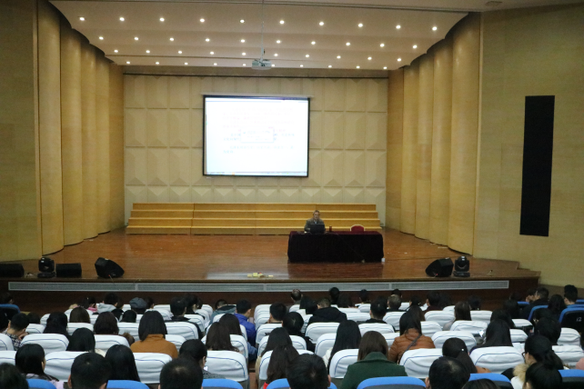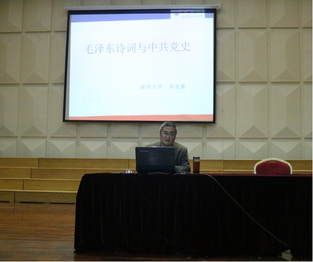 为贯彻落实党的十九大和习近平系列重要讲话精神,落实校党委2018年工作部署,进一步加强基层党的建设,提升基层党务工作者的工作水平,管理学院党总支、艺术学院党总支11月29日14:00在艺术楼音乐厅邀请郑州大学马克思主义学院党委副书记郑发展来校做“毛泽东诗词与中共党史”的专题报告。报告会由管理学院党总支书记张小雁同志主持,管理学院与艺术学院教职工党员和学生党员参加了此次报告会。