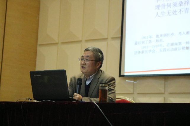 诗词是毛泽东文化性格和领袖风范的重要展现,是他伟大思想和伟大人格的艺术结晶。报告会上,郑教授对毛主席诗词进行了深入浅出的剖析,引经据典,借古鉴今,旁征博引,他用幽默风趣的语言,讲述了毛主席从17岁离家就读时的 “孩儿立志出乡关,学不成名誓不还。埋骨何须桑梓地,人生无处不青山。”到82岁作的 《贺新郎·改张元干词悼董必武》中“天意从来高难问,况人情老易悲难诉。”那段承载着中国革命和建设最鲜活的记忆的65年的岁月。讲至动情处,郑老师用他饱含深情的嗓音现场朗诵了数首毛主席的诗词,赢得了台下阵阵掌声。