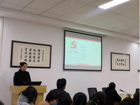 随后,为鼓励我院教师学习优秀典型,进一步提高党性修养,张小雁在会上分享了张桂梅的先进事迹及中宣部授予其“时代楷模”称号的视频,张桂梅全身心投入基础教育和慈善事业,不忘初心、无私奉献的精神让与会人员备受感动与鼓舞。张小雁书记还以习近平总书记在第30个教师节前夕所发表的重要讲话为号召,在争做"四有"好老师的指导精神下鼓励大家保持过硬的政治素养,胸怀理想,脚踏实地,把教书育人作为自身的人生理想和奋斗目标。