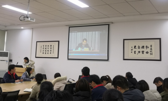 会上,王培培大家带领大家集中观看党的十九届六中全会精神中央宣讲团成员施芝鸿同志在河南省人民会堂的宣讲报告会视频。宣讲报告会中,施芝鸿紧紧围绕学习党的十九届六中全会《决议》和习近平总书记重要讲话,结合参与此次《决议》的起草要求,联系改革发展,明确党的建设实际,对全会精神进行了深入阐释和系统讲解。总体解读了党中央起草此次《决议》的重要意义,党中央百年奋斗史上四个历史时期的取得的历史性成就、发生的历史性变革,以及对于在新的“赶考”之路上对全党同志的殷切寄语。宣讲视野开阔、精辟透彻,具有很强的理论性、思想性、实践性和启迪性。