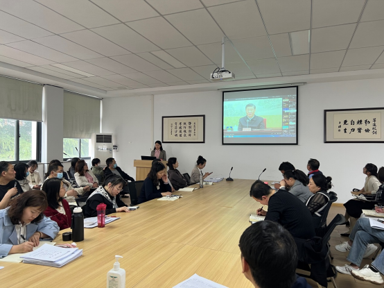会上,全体教职工通过观看视频认真学习习近平总书记在二十届中央政治局第四次集体学习时的重要讲话精神。讲话指出,学习贯彻习近平新时代中国特色社会主义思想是新时代新征程开创事业发展新局面的根本要求。坚持用马克思主义中国化时代化最新成果武装全党、指导实践、推动工作,是我们党创造历史、成就辉煌的一条重要经验。新时代新征程,面对错综复杂的国际国内形势、艰巨繁重的改革发展稳定任务、各种不确定难预料的风险挑战,要实现党的二十大确定的战略目标,迫切需要广大党员、干部特别是各级领导干部进一步深入学习贯彻习近平新时代中国特色社会主义思想,这是党中央确定在全党开展这次主题教育的主要考量。