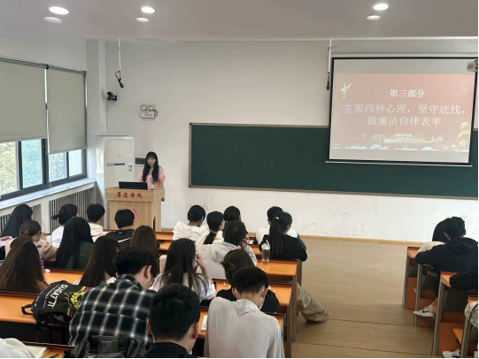 课程伊始,由张瑞霞带领积极分子与发展对象了解党对廉政的要求,明白思想是行动的先导。课程中,张瑞霞同积极分子、发展对象互动,通过询问积极分子与发展对象对廉洁纪律的理解,来准确的修正学生思想的不足,从而使积极分子与发展对象深入了解守纪律的意义,引导其学习先辈的廉洁自律,加强政治理论学习,激励积极分子与发展对象诚信为人,严于律己,坚持底线思维,以自律自强的意志来为人民服务。