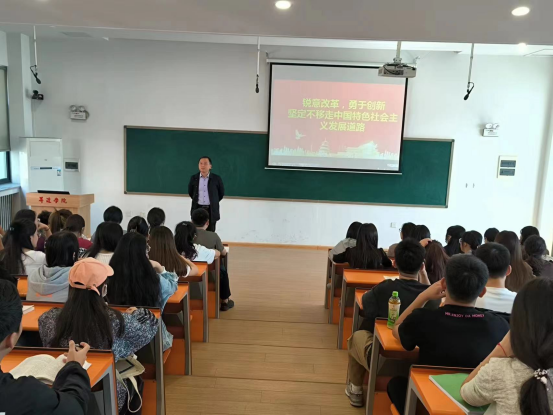 李裔辉从改革开放的业绩与成就、改革开放成功的原因分析、改革开放的未来思考这三个方面展开讲解,并与同学们交流讨论,课堂氛围积极活跃。课程表示,改革开放是中国共产党历经千难成就的一番伟业,在此期间我们涉过无数险滩、啃下无数硬骨头,这其中无不闪现着“敢想、敢做、敢为天下先”的改革创新精神和特殊时代意义。