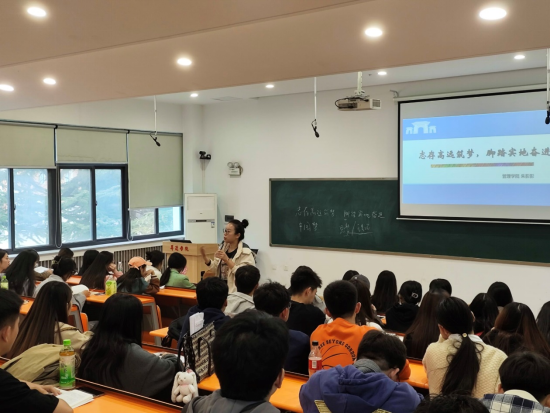 11月3日12:30,管理学院党委副书记、院长朱影影在教学楼二号楼208讲授题为《志存高远筑梦,脚踏实地奋进》的主题党课。管理学院第十八期入党积极分子和发展对象全员参加。