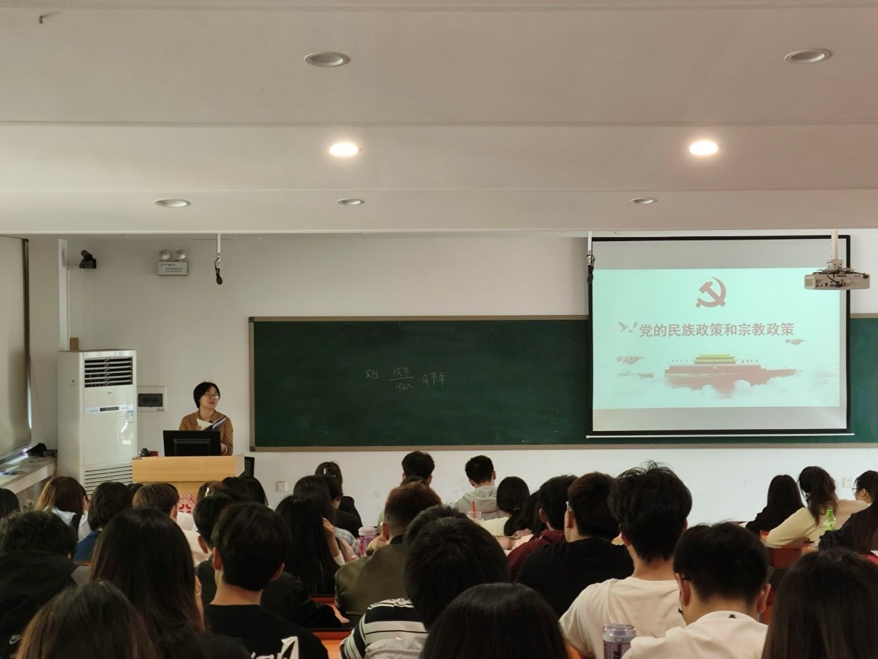 课上,刘宪围绕《大学生中国特色社会主义民族宗教理论知识手册》,重点讲解了习近平总书记关于民族宗教工作重要论述、民族理论与政策、马克思主义宗教观和党的宗教政策。刘宪强调,大学生要做到“两个不得”、“五个严禁”,树立正确的宗教观,牢固树立平等团结互助和谐的社会主义民族关系,铸牢中华民族共同体意识。