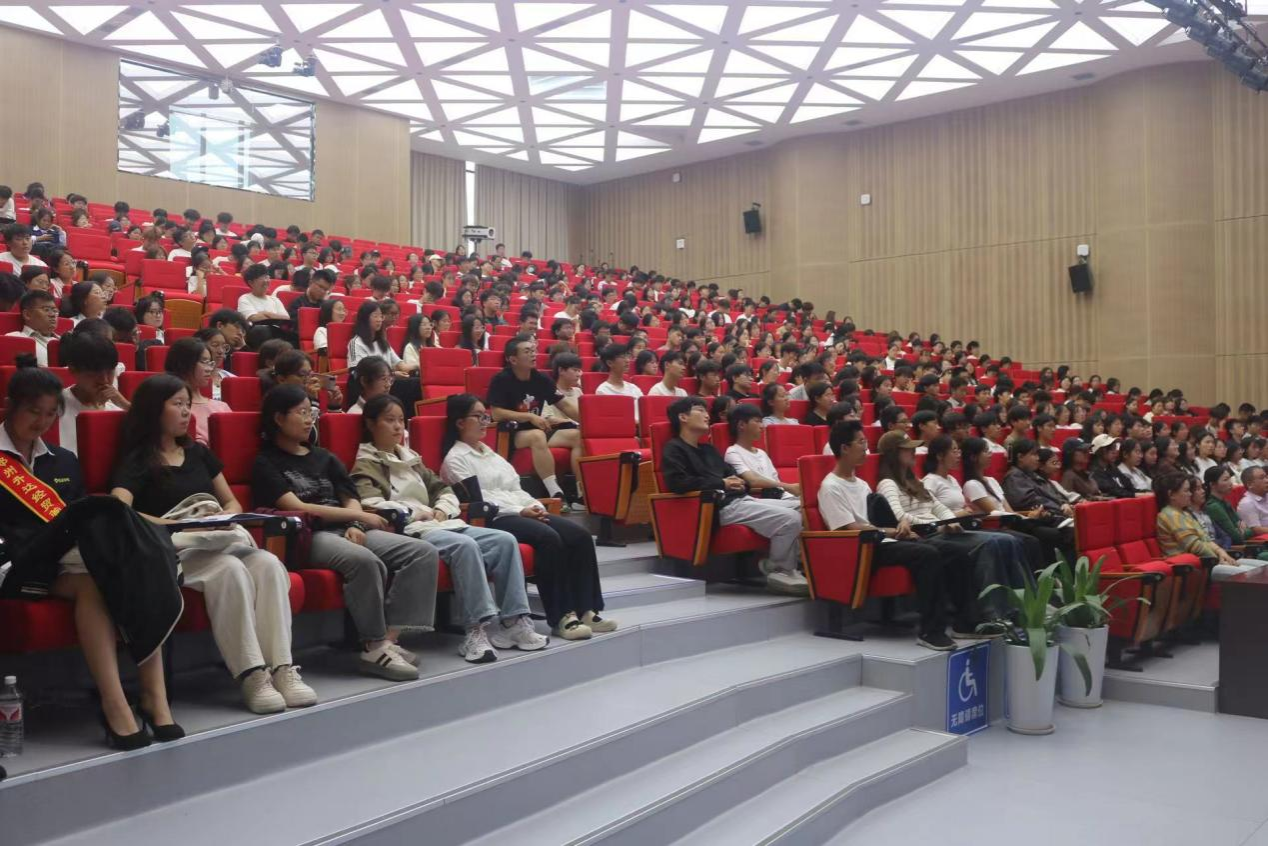 为加强大一新生思想文化建设,满足国家思想文化建设需要,增强大一新生的安全意识,管理学院党委书记职正路同志于2024年9月26日下午14:00在新图书馆三楼报告厅作以“砥砺奋进新征程,扬帆起航再出发”为主题的2024年新生开学思政第一课,与会人员有:管理学院院长朱影影、党委书记职正路同志、教学秘书刘锦老师、行政秘书兼团委书记许广庆老师、各专业教研室教师代表、16级优秀毕业生黄洁敏学姐、管理学院2024级新生辅导员以及2024级全体新生。此次会议由管理学院行政秘书兼团委书记许广庆老师主持。