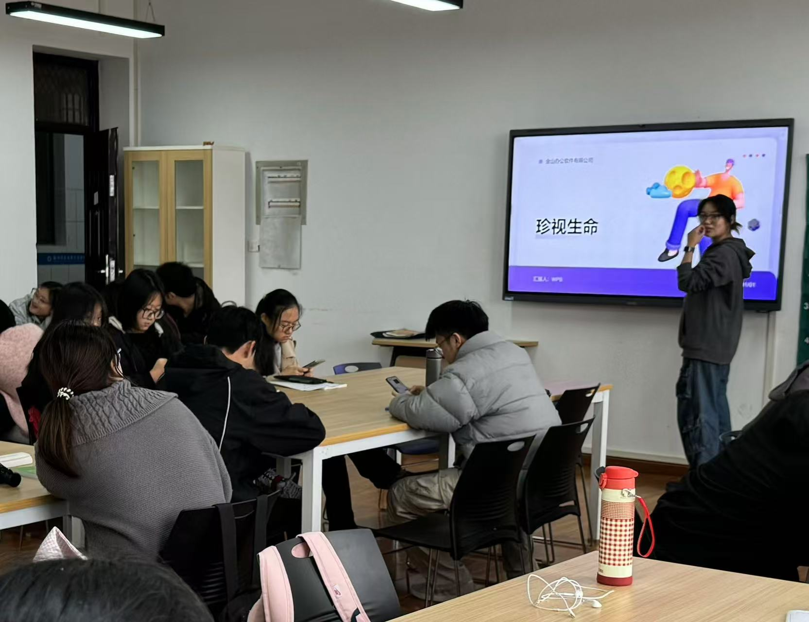 同学们首先对习近平总书记关于安全生产的重要指示精神进行了初步的了解,在新征程上我们要整体把握、系统领会、一体落实好指示精神中的重大要求,坚决克服麻痹思想和侥幸心理,减少灾难发生的风险,坚持“生命至上,人民至上”。接着团支书介绍了全国防灾减灾日的相关知识,并通过“地震知识”、“火灾知识”和“洪灾知识”三个方面展开讲解。通过学习和思考,同学们对这三种灾难有了更深刻的认识,并将灾难来临时的基本逃生要领熟记于心,做到在灾害来临时能够冷静处理、灵活自助,最大限度地减少灾害所造成的生命和财产损失。随后,在团支书的组织下,全班同学观看了防灾减灾科普宣传视频