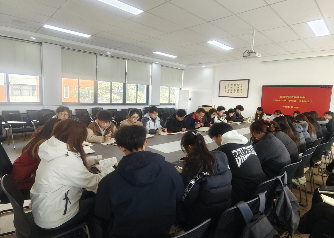 管理学院于2025年2月25日13:10在二号楼209教室举行2024—2025学年第二学期团委和学生会第一次工作会议。管理学院行政秘书兼团委书记许广庆老师、团委常务副书记马超老师、第27届主席团及各部门部长参加此次工作会议。