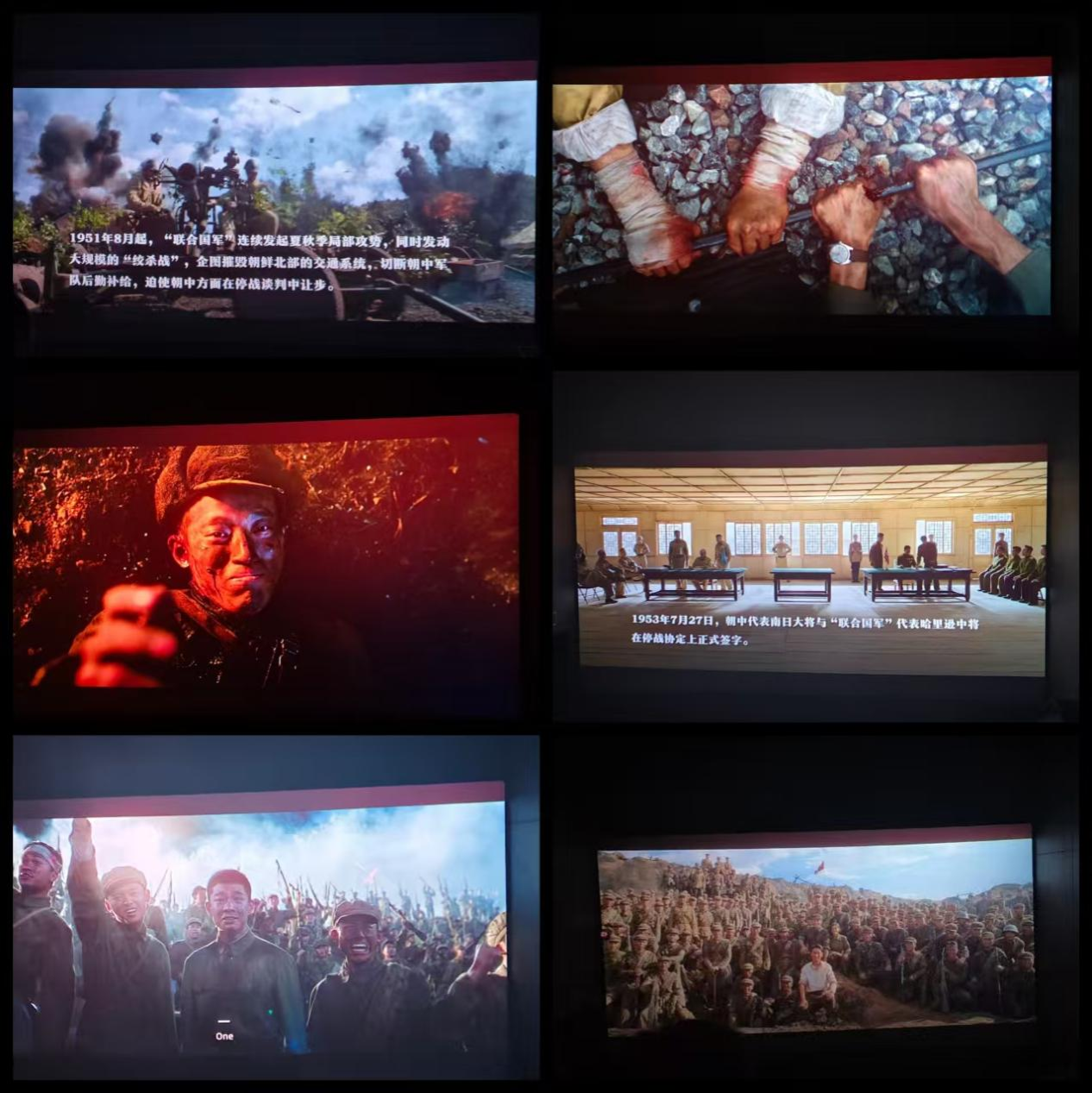 观影过程中,全体成员被中国志愿军不怕牺牲勇往直前的精神所震撼。影片中,既有为捍卫和平而舍生取义的警卫排长姚庆祥,更有为攻克敌人占据点而用自己的身体挡在敌人枪前而英勇牺牲的黄继光。在上甘岭战役中,志愿军们经历43天的浴血奋战,打退敌人9000多次的冲锋,歼灭敌人2.5万余人,最终夺回上甘岭阵地。我们看到志愿军们不怕困难迎难而上的革命精神以及心怀国家、团结协作的深厚情怀。