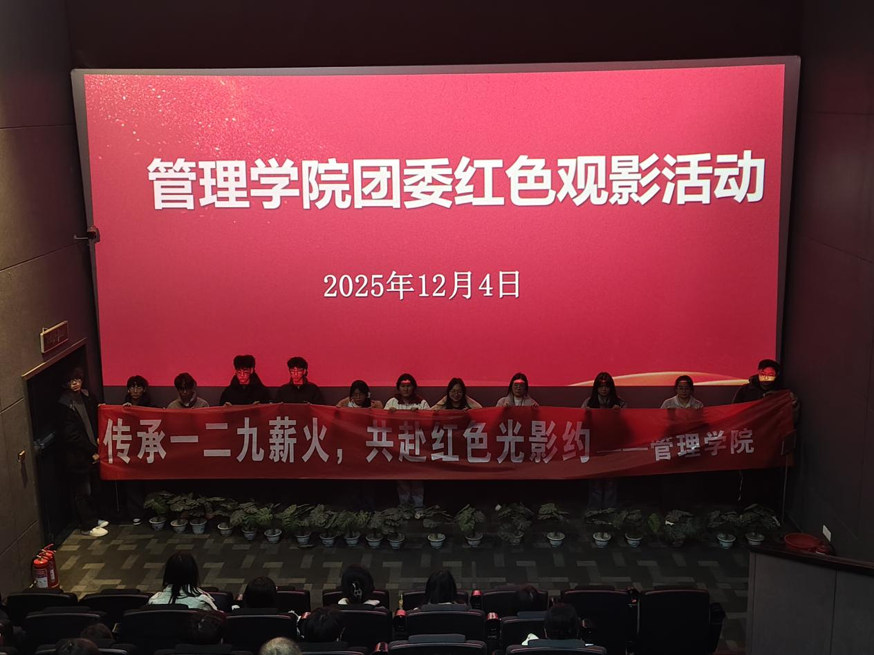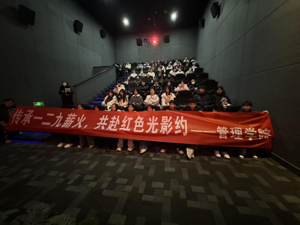 为延续一二·九运动的精神,传承爱国主义情怀,激励当代青年敢于担当的勇气。管理学院于2025年12月4日12:10在奥斯卡金时代影城举办“传承一二九薪火,共赴红色光影约”红色观影活动。此次活动由管理学院组织部主办,参加本次观影活动的人员:管理学院团委学生会全体同学。