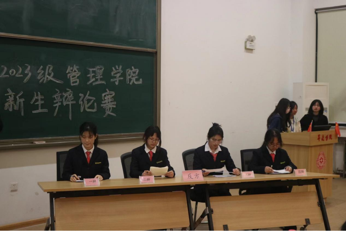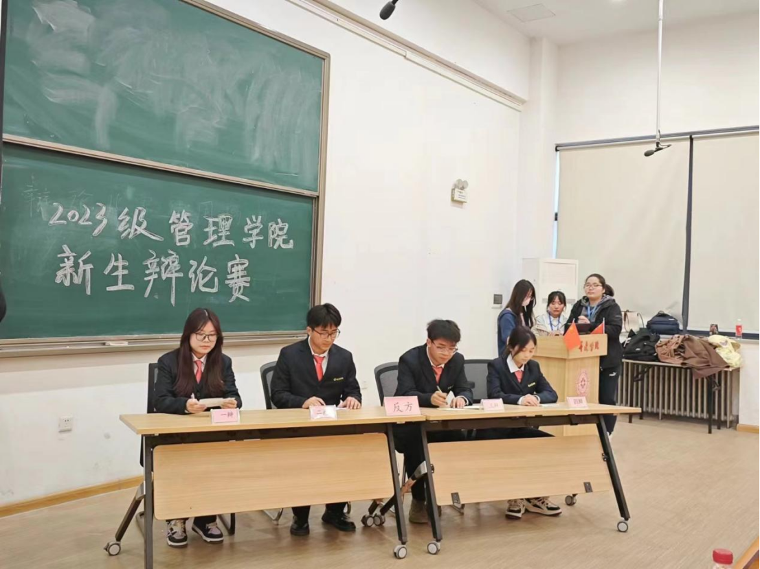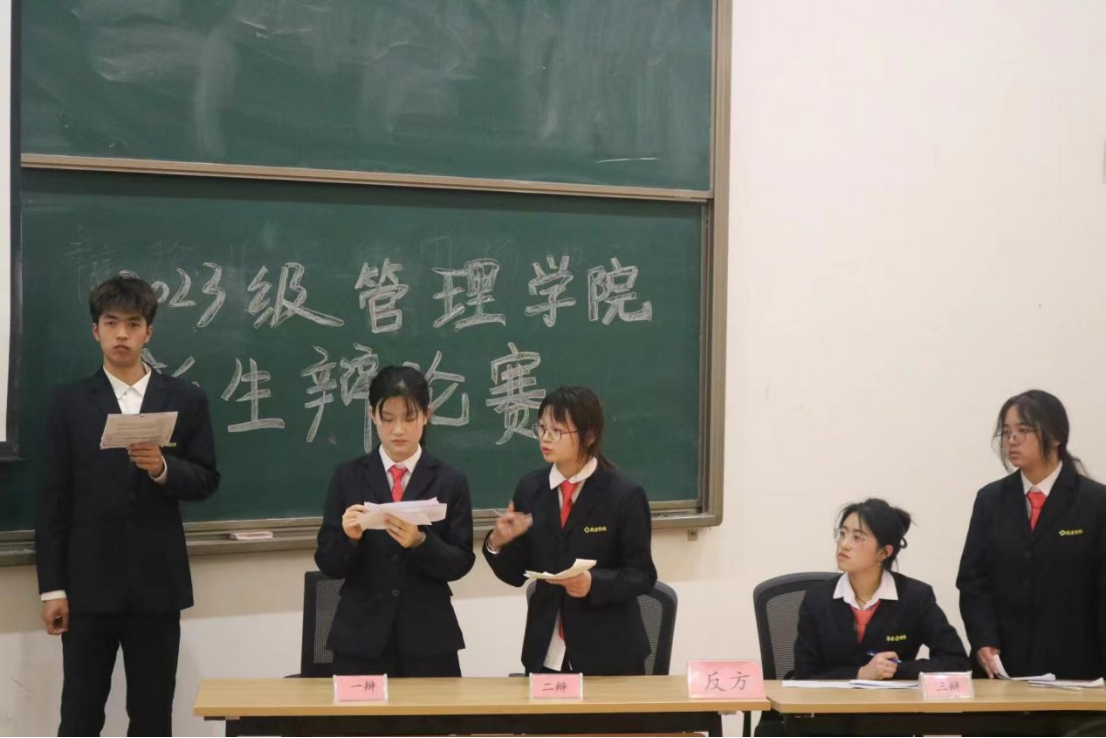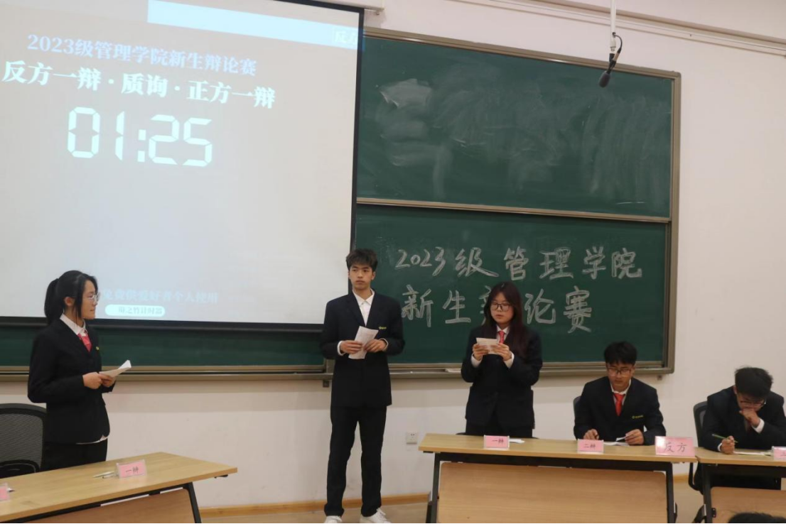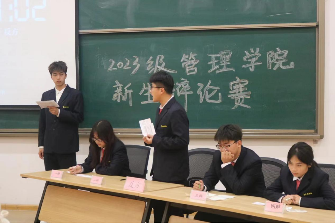 “唇枪舌战遍天下,妙语连珠论四方”,为培养同学们的语言思辨能力和团队协作能力,促进同学们的全面发展,丰富校园文化生活,管理学院于2024年3月19日18:30在管理学院二号楼116教室举办2023级新生辩论赛决赛。出席本次辩论赛的嘉宾有新生辅导员马超老师、祖鹏阳老师,26届主席团以及参加决赛的选手。