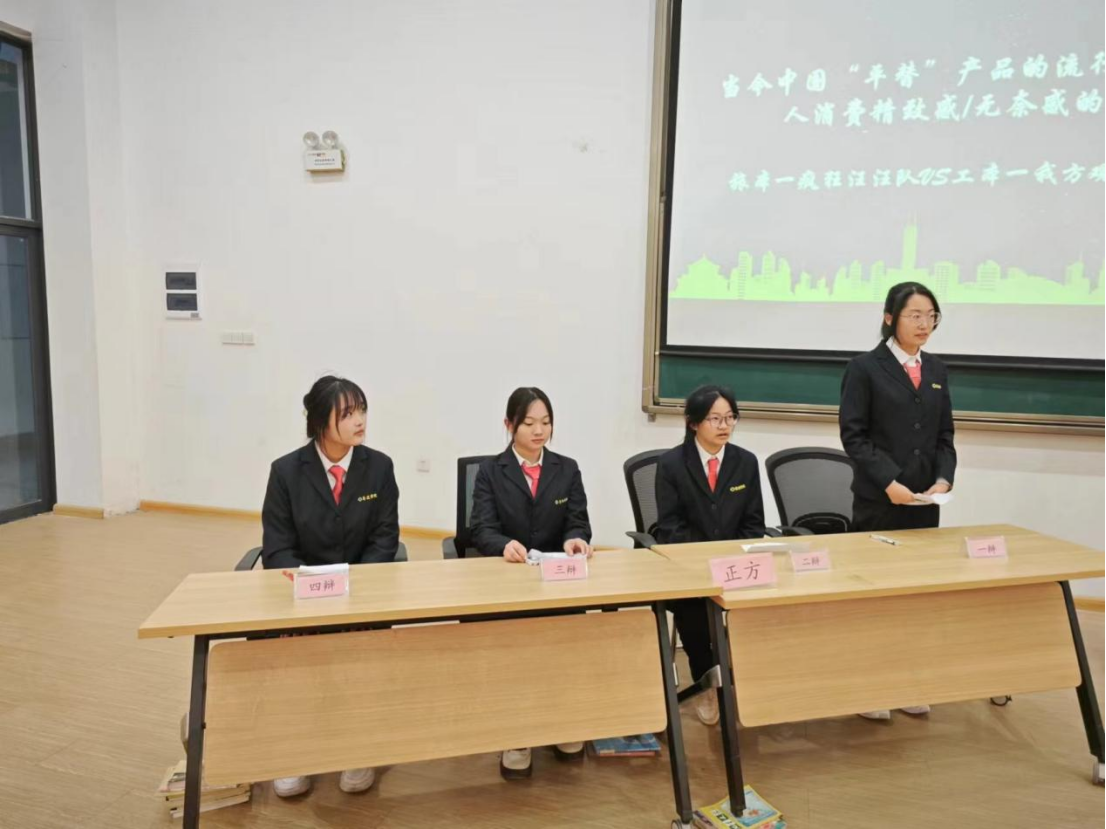 第一场辩论赛在主持人的致辞中拉开了帷幕,以“当今中国平替产品的流行是年轻人消费精致感或无奈感的体现”的话题展开辩论。比赛中八位辩手旁征博引、唇枪舌剑、你来我往、侃侃而谈,充分展示出他们的博学和口才。反方三辩更是以四两拔千斤的方法,一次一次化险为夷,击破对手的观点。在这扣人心弦的决赛中,参赛队伍乘风破浪,气势如虹,自由辩论环节将比赛气氛再次推向高潮,现场气氛迅速升温,精彩不停,掌声不断。第一场辩论赛以激烈的自由辩论环节的结束画上了完美的句号。