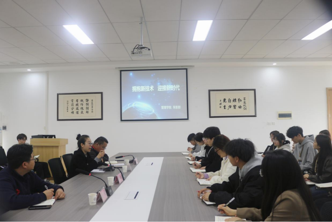 首先由朱影影院长发表讲话。她指出要积极去了解新事物,探索新技术的使用,开拓我们自身的视野,转变我们的思维。在新时代中,学习更多知识,努力让自己走在时代的前端。要积极思考如何解决未来的问题,同时也要多角度看问题,及时了解更新的工具,用现代化新技术提高效率。