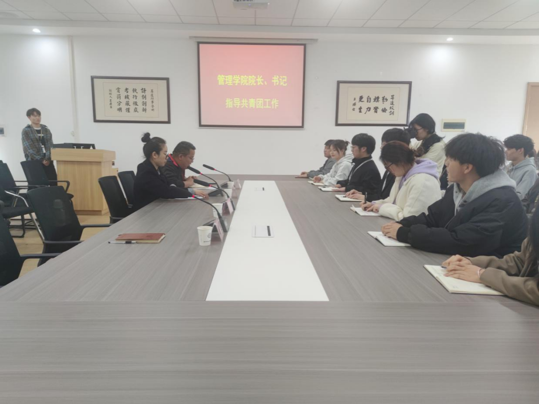 为提升管理学院共青团学生的综合素质,增强社会责任感和使命感,培养我们的爱国主义情怀。管理学院于2024年4月9日在二号楼209教室召开共青团会议,管理学院院长朱影影以及党委书记职正路莅临此会议进行指导工作。与会人员还有行政秘书兼团委书记许广庆,团委常务副书记马超,26届主席团及团学会各部门部长。会议由许广庆老师主持。