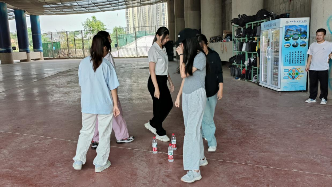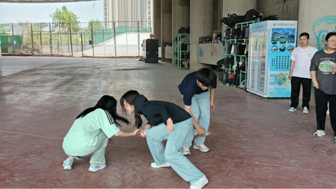 活动开始,先进行分组。首先玩的是能够调动现场气氛的抢水瓶游戏,两两为一对,进行每一轮的比拼。一声“开始”,场上局面瞬间紧张起来,同学们眼疾手快,精准抓瓶,场上笑声一片。