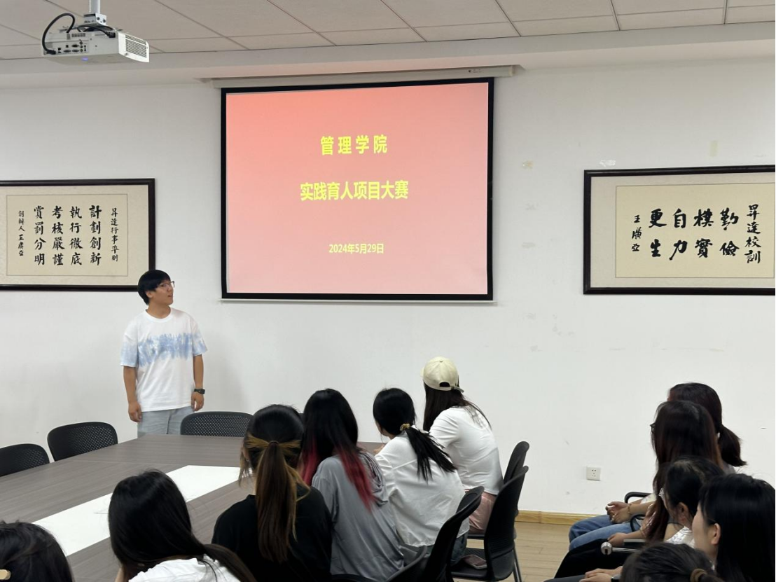 为培养团学会的实际操作能力和创新思维,促进团学会理论知识和社会实践充分结合。管理学院于2024年5月29日在2号楼109教室成功举办实践育人项目大赛。